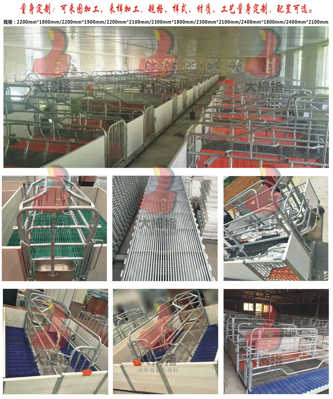 大拇指根據(jù)客戶需要,加厚焊管制造完畢采用里外熱浸鋅,不用擔心焊接處生銹。無論焊管和熱鍍鋅鋼管,大拇指采用很厚的材料,母豬產(chǎn)床上部分籠架在500斤左右,母豬產(chǎn)床1200-1500斤左右,比一般的產(chǎn)床要重500斤左右。